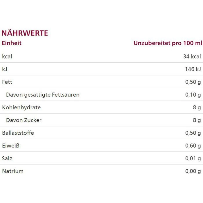 • Ohne Zusatz von Zucker oder anderen Zusatzstoffen