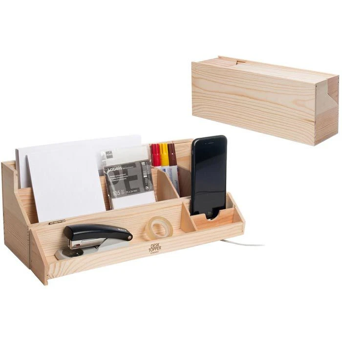 • Originelle Fichtenholz-Weinkiste, zum Tisch-Organizer umbaubar