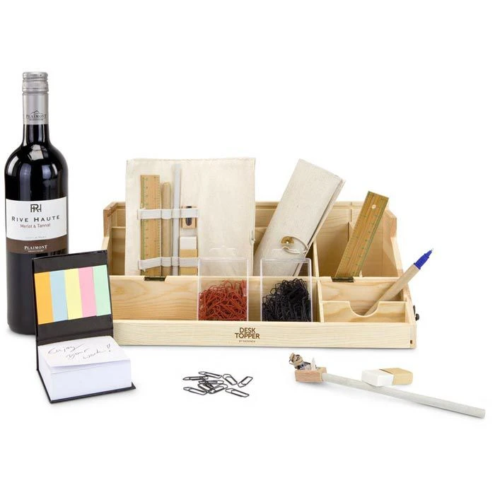 • Mit passenden Schreib-Utensilien & einer Flasche französischem Rotwein