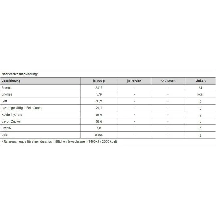 Zutaten: VOLLMILCHSCHOKOLADE 45% (Zucker, VOLLMILCHPULVER, Kakaobutter, Kakaomasse, Emulgator Lecithine (SOJA), Vanillin), MAGERMILCHPULVER (17,5%), Zucker, pflanzliche Fette (Palm, Shea), BUTTERREINFETT, Emulgator Lecithine (SOJA), Vanillin