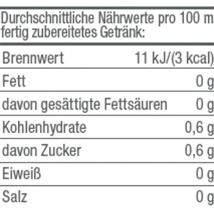 Dosierung: 1 Teil Sirup + 23 Teile Wasser im Glas oder in der Flasche mischen.