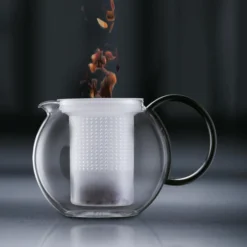 Bodum Tee-Kanne Chambord Set K11143-16, Glas, Mit Kunststoff-Sieb, Mit Stövchen, Glänzend, 1,3 L