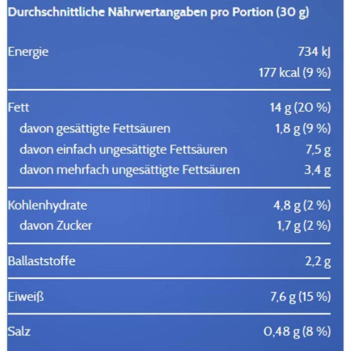Zutaten:ERDNUSSKERNE, Sonnenblumenöl, Salz.